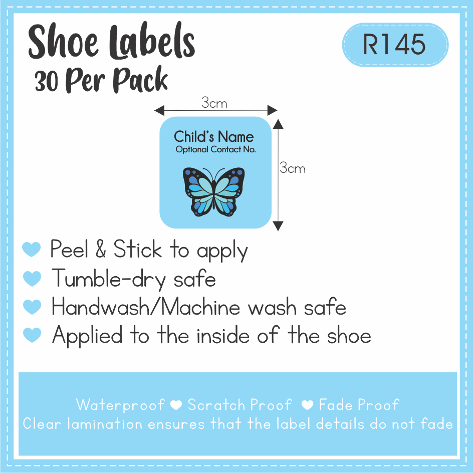 A strong label that is applied to the heel area on the inside of the shoe (30mm x 30mm).